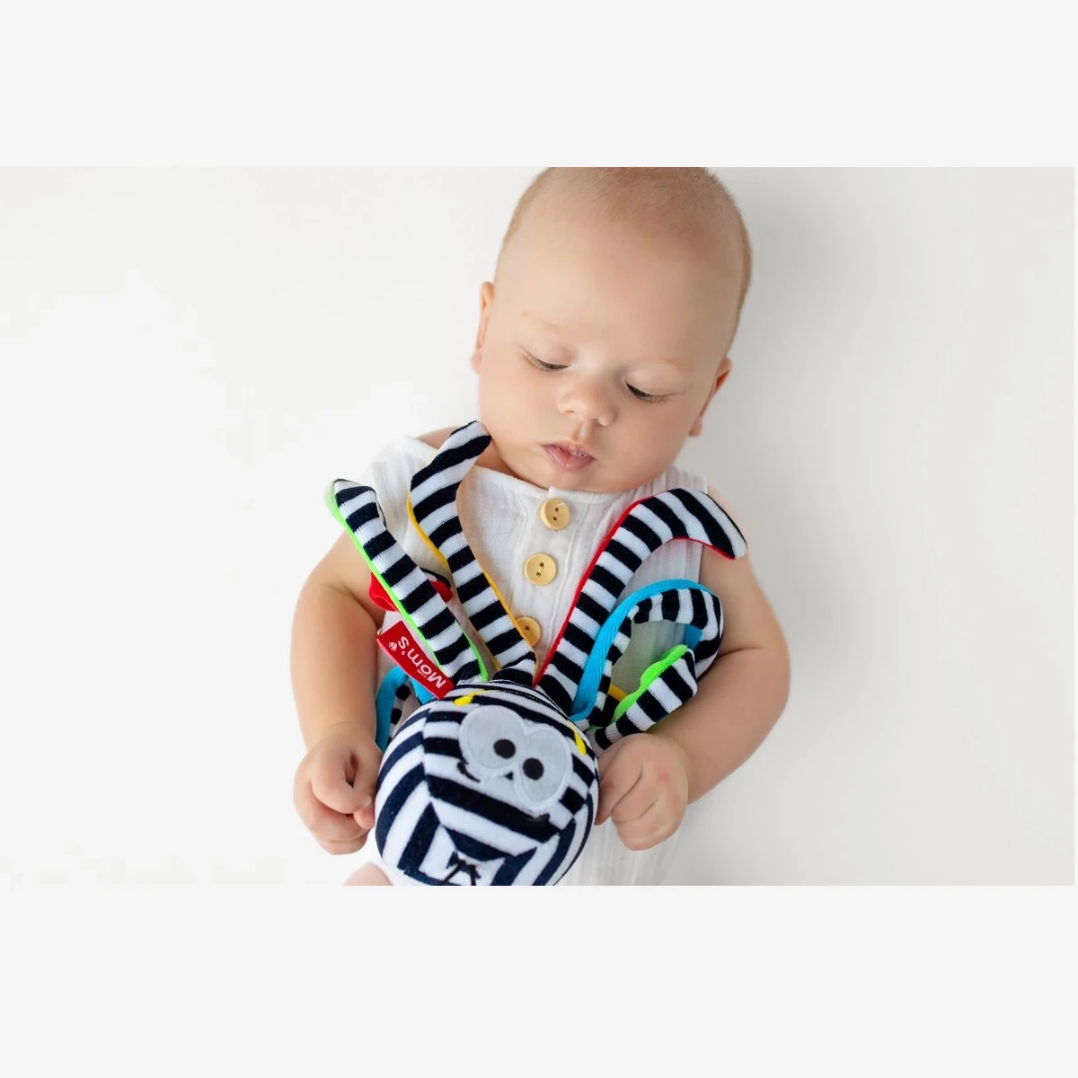 - Kontrastowa zabawka sensoryczna dla najmłodszych. Stymuluje wzrok, słuch i dotyk malucha. Miękkie macki przypominające pępowinę dają poczucie bezpieczeństwa. Z zawieszką do wózka czy łóżeczka. Idealna dla noworodków w pierwszym okresie życia.