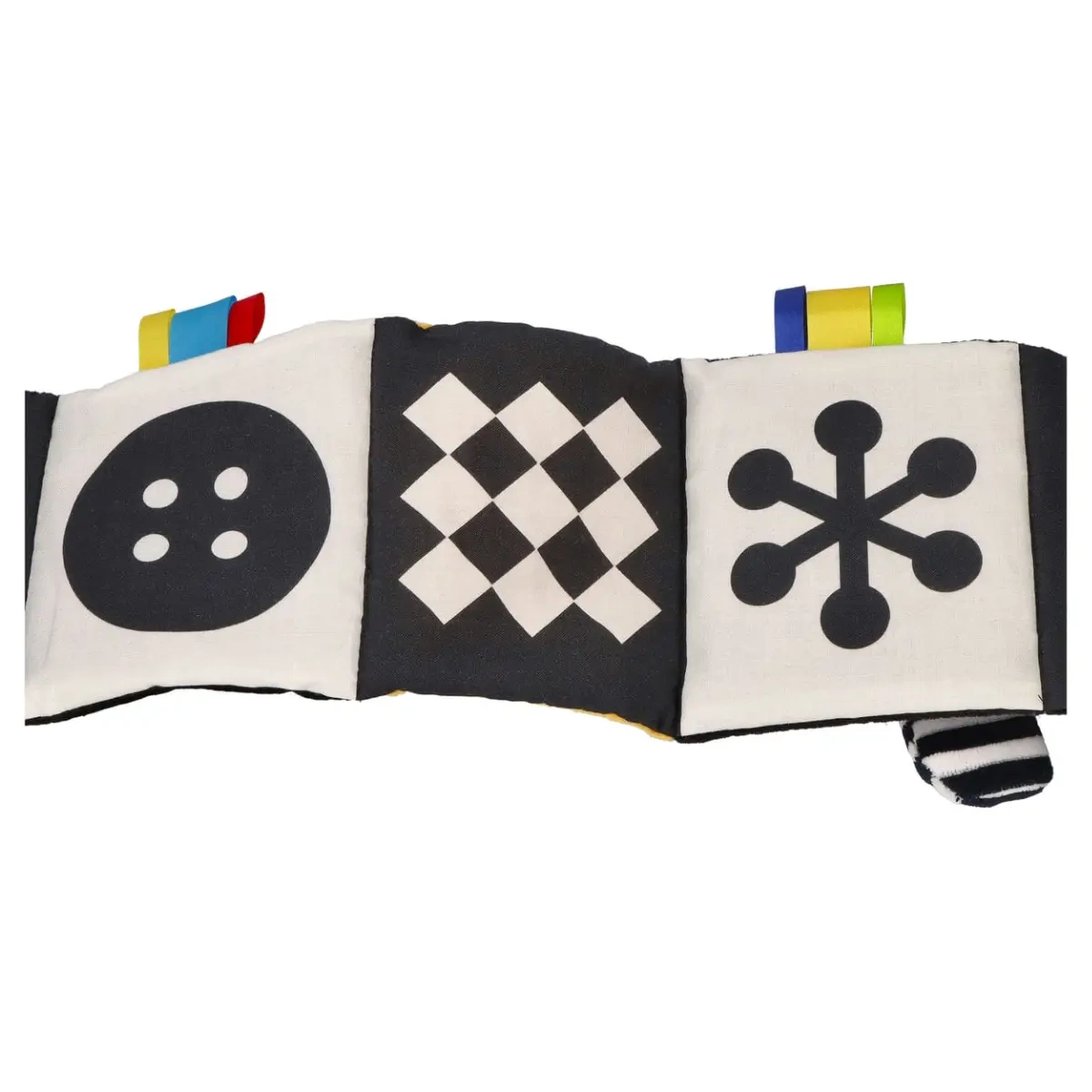- Kontrastowe, biało-czarne ilustracje idealne dla rozwijającego się wzroku niemowląt