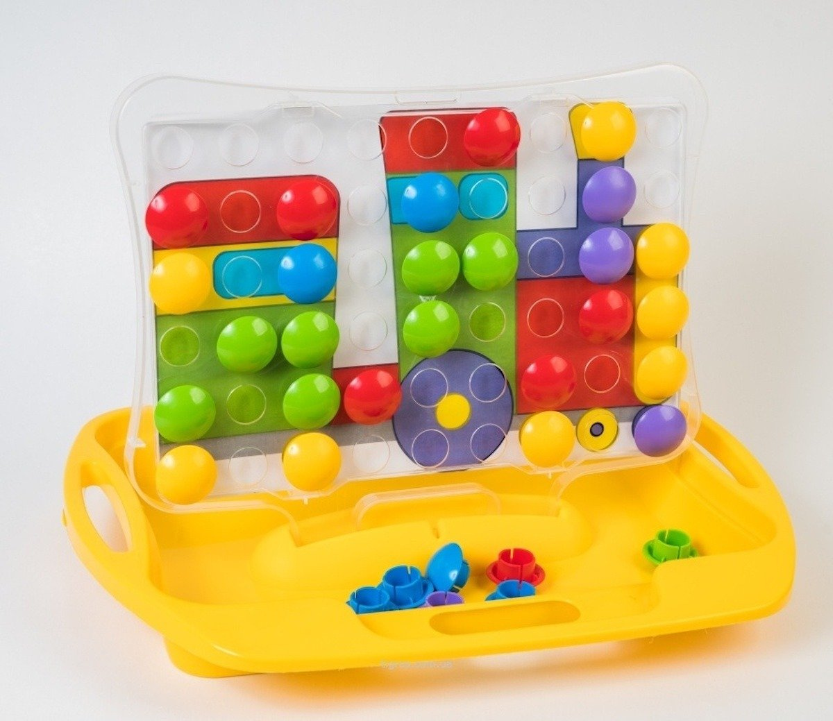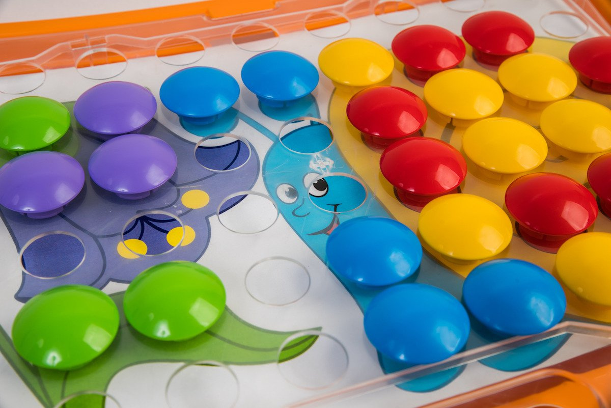 - Zestaw zawierający kolorowe elementy oraz instrukcje o zróżnicowanym poziomie trudności. Poprzez odpowiednie dobieranie kolorowych "grzybków" dziecko tworzy obrazy z dołączonych instrukcji. Łatwa w montażu i wykonana z bezpiecznych materiałów.