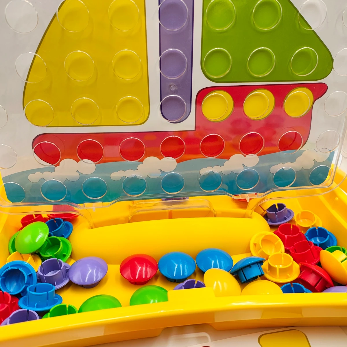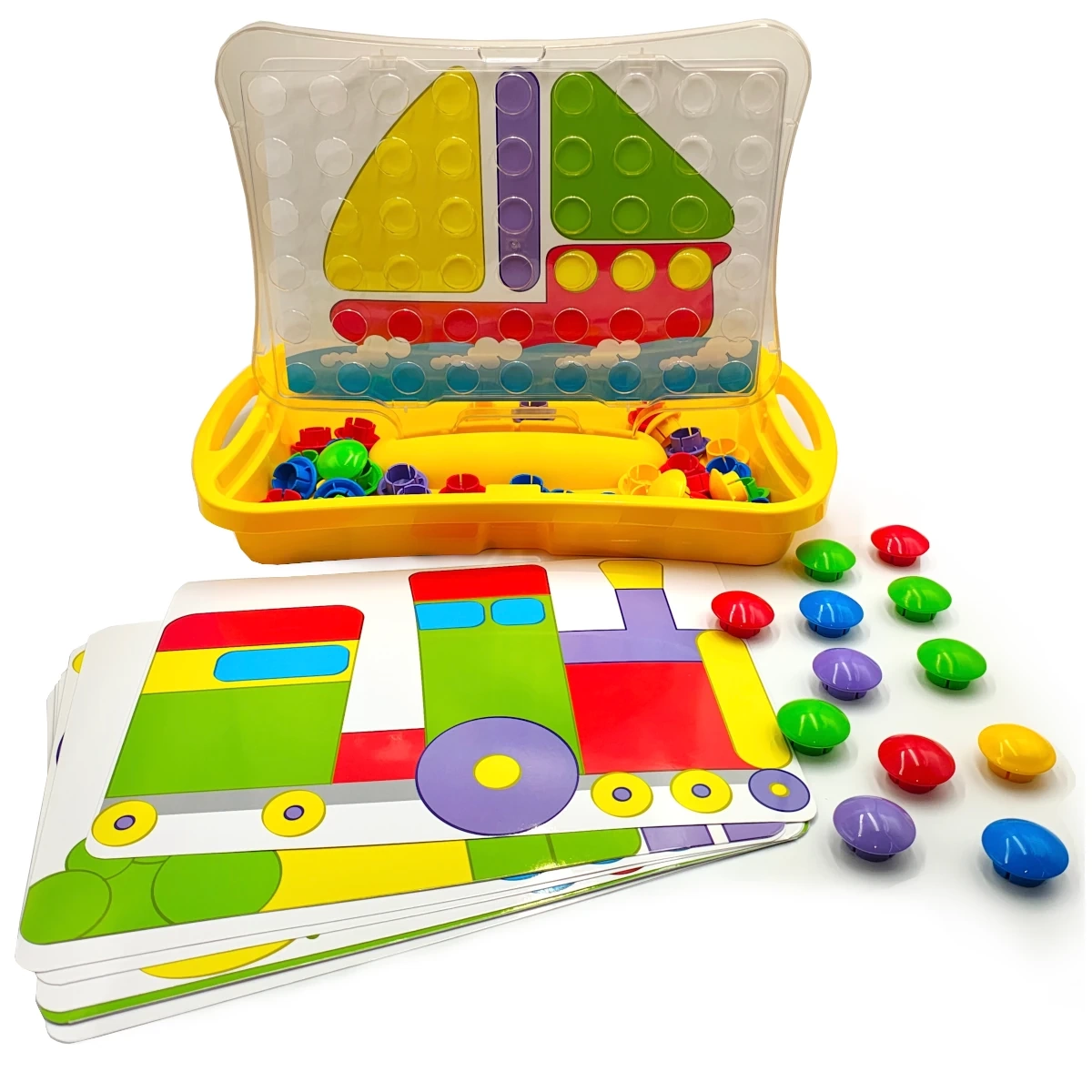 Co zawiera zestaw? 54 kolorowe piny oraz plansze z instrukcjami w estetycznej walizeczce o wymiarach 44 × 33 × 6 cm.