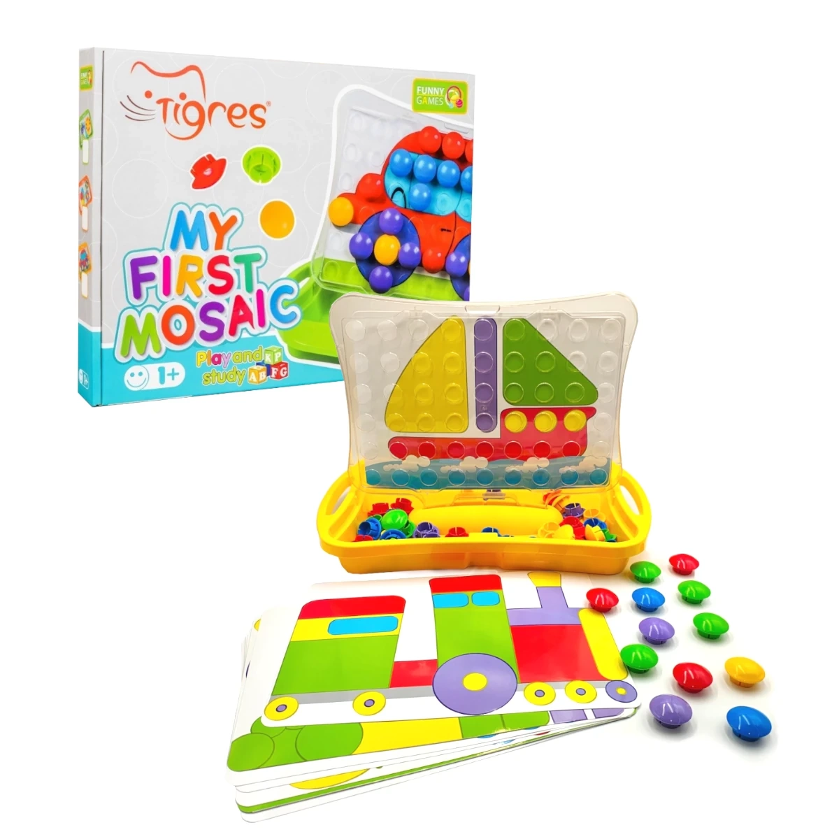 Mozaika edukacyjna dla młodszych dzieci Tigres to układanka z 54 kolorowymi pinami dla dzieci od 1 lat, która rozwija motorykę małą i koordynację oko-ręka. Zestaw zawiera instrukcje o zróżnicowanym poziomie trudności, dzięki czemu rośnie razem z dzieckiem.