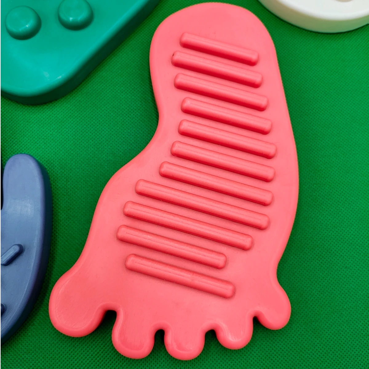 W kategorii zabawek sensorycznych Zmysłostrada wyróżnia się liczbą 100 elementów i solidnością wykonania. Twój młody odkrywca układa indywidualny tor, po którym stąpa bosą stopą, trenując propriocepcję i koordynację ruchową. Każdy moduł ma inną teksturę — gładką, wypukłą, chropowatą — co stymuluje receptory dotyku.