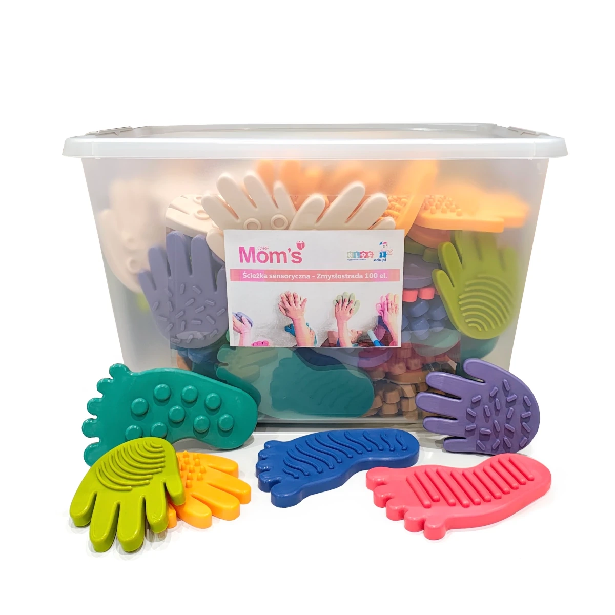 - Zestaw sensoryczny Zmysłostrada od Mom's Care to 100 kolorowych elementów o różnych fakturach, które rozwijają zmysł dotyku, równowagę i motorykę dziecka od 12 miesiąca życia. Duży komplet do układania toru sensorycznego w domu i przedszkolu.